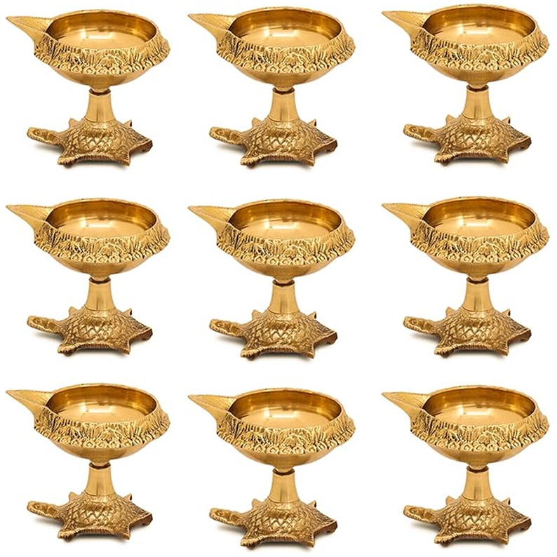 Illuminate your home with the divine radiance of our Brass Diya with Turtle Base. Handcrafted from high-quality brass, this exquisite diya lamp embodies traditional craftsmanship and spiritual symbolism. The diya is designed with a sturdy turtle base, which represents stability, longevity, and good fortune in Vastu Shastra.